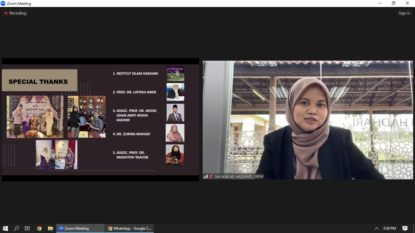 For the first session Dr. Muhammad Hilmi Jalil and Dr. Ahmad Irdha Mokhtar started briefing new students regarding terms and conditions regarding the students then later continue with the sharing session from Dr. Nur Asmadayana Hasim, Lecturer at School of Liberal Studies UKM who are also an Associate Fellow of Institute of Islam Hadhari. This sharing session is moderated by our Doctor of Philosophy student, Mr. Hifdzi Zaim Zamri.