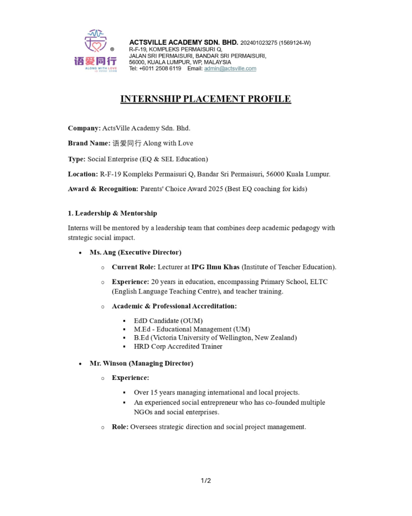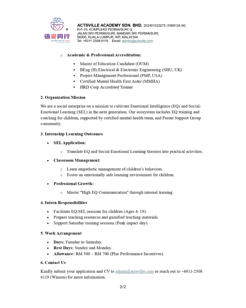 - Starting Salary: RM 2,800 for full-time role (excluding allowance & other benefits)