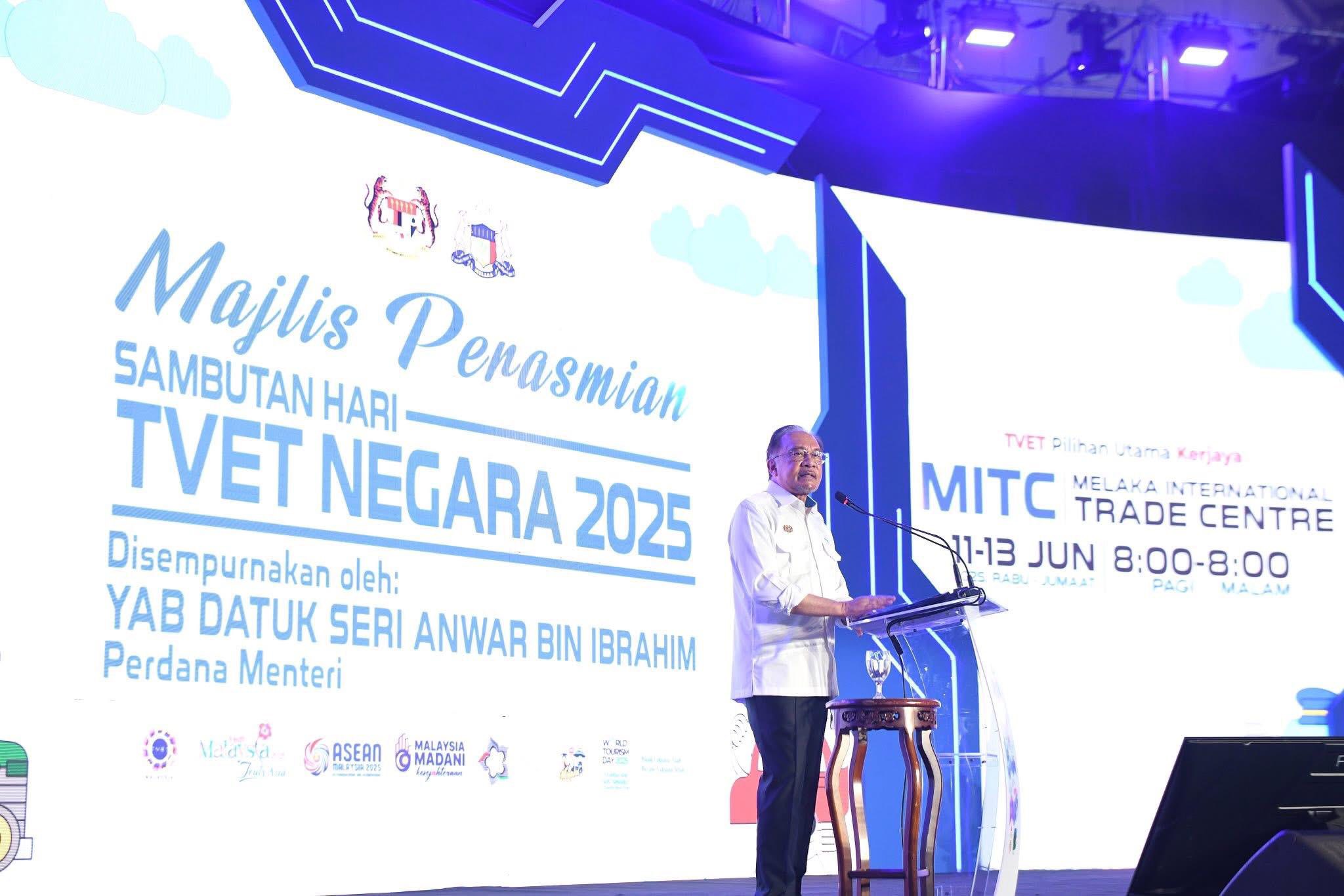 The National TVET Day 2025 celebration, held at the Melaka International Trade Centre (MITC) in Ayer Keroh, was officiated by the Prime Minister of Malaysia, YAB Dato’ Seri Anwar Ibrahim.