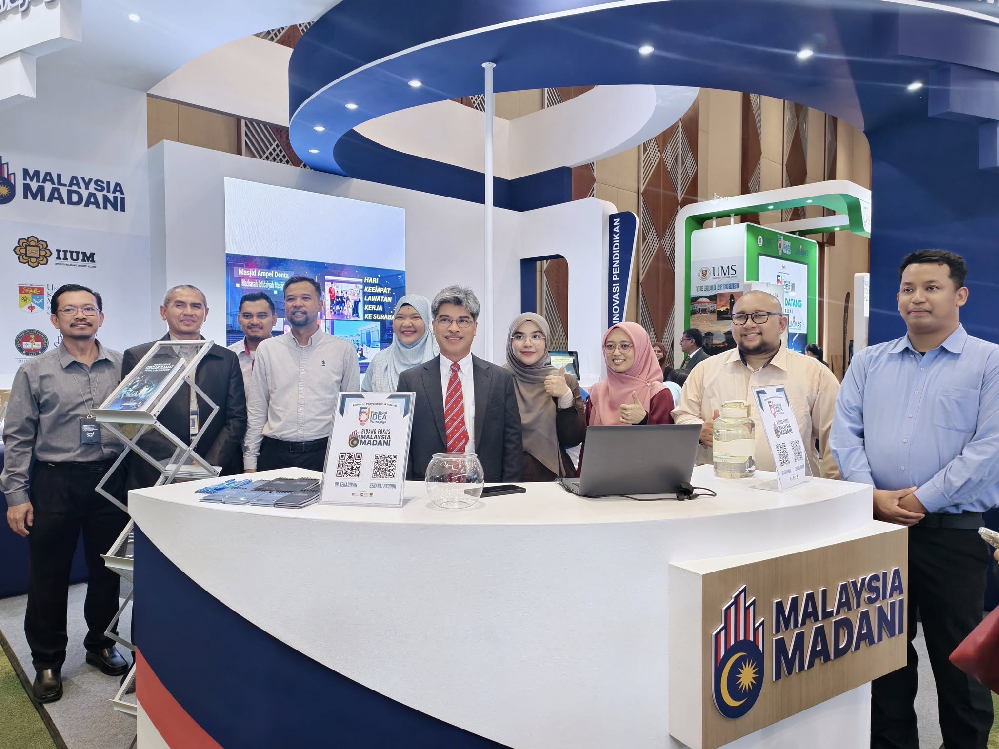 The exhibition received an overwhelmingly positive response from visitors. The Malaysia MADANI booth was further honoured by an official visit from Prof. Dato’ Dr. Sufian Jusoh, Vice-Chancellor of Universiti Kebangsaan Malaysia, and Prof. Dr. Jamia Azdina Jamal, Director of Pusat IDEA UKM and Acting Deputy Vice-Chancellor (Research and Innovation). The presence of senior management representatives from UPSI and UIAM further strengthened the official visit, reflecting a shared commitment among higher education institutions to advancing the aspirations of Malaysia MADANI.