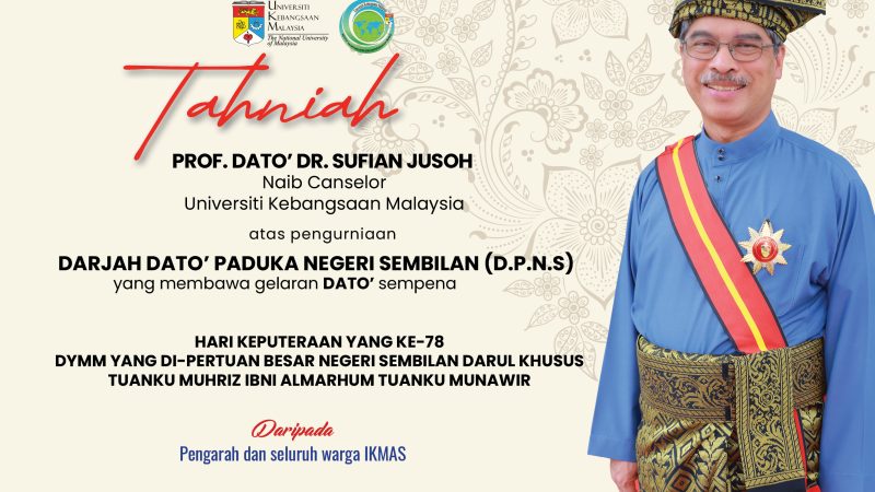 Tahniah YBhg. Prof. Dato’ Dr. Sufian Jusoh, Naib Canselor Universiti Kebangsaan Malaysia (UKM)