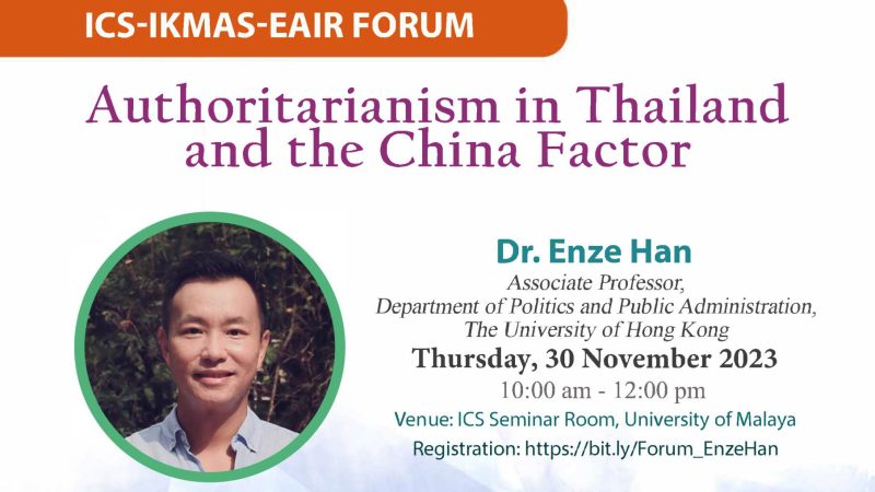 Authoritarianism in Thailand and the China Factor Speaker : Dr. Enze Han Associate Professor, Department of Politics and Public Administration, The University of Hong Kong …