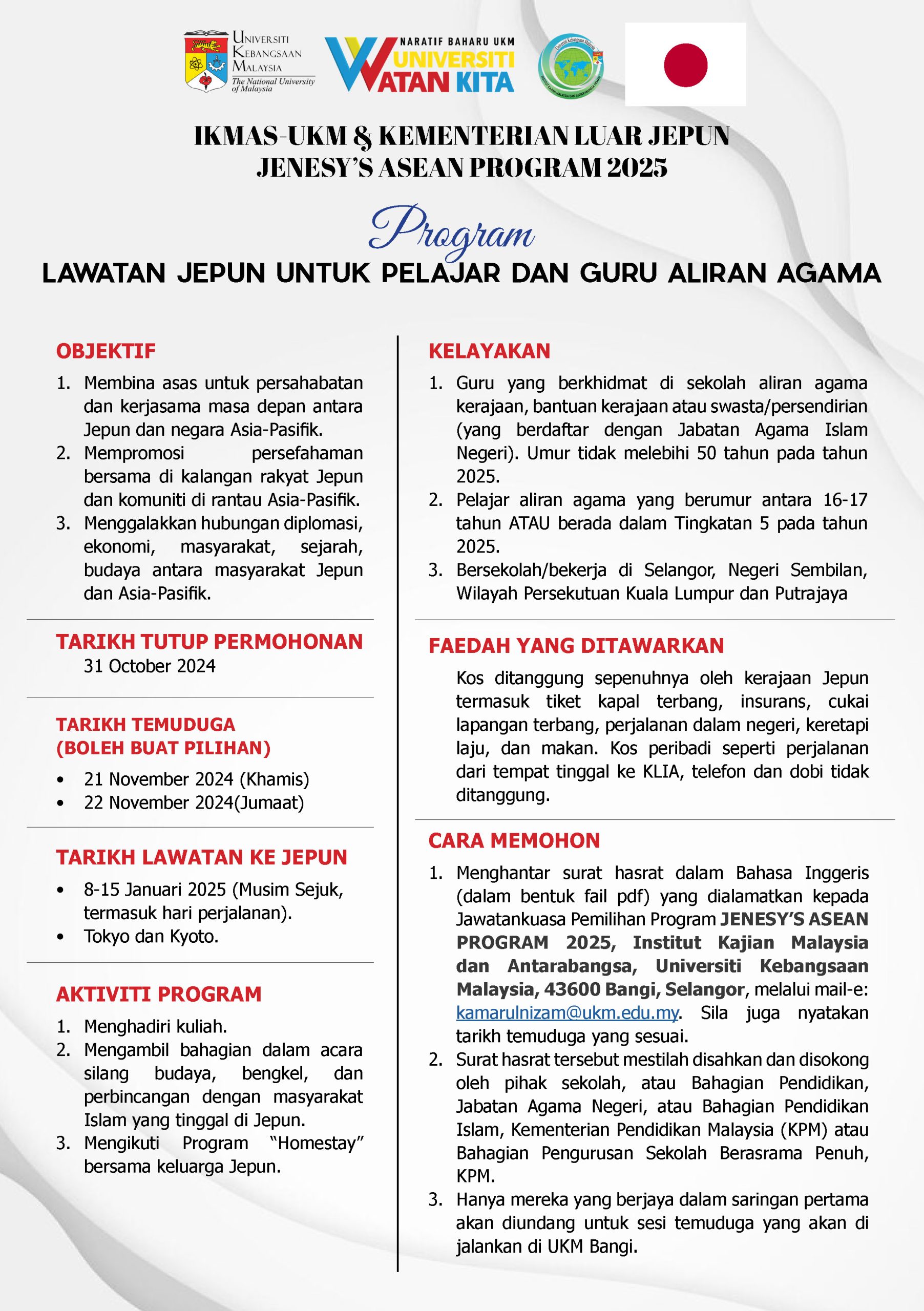 Program LAWATAN JEPUN UNTUK PELAJAR DAN GURU ALIRAN AGAMA