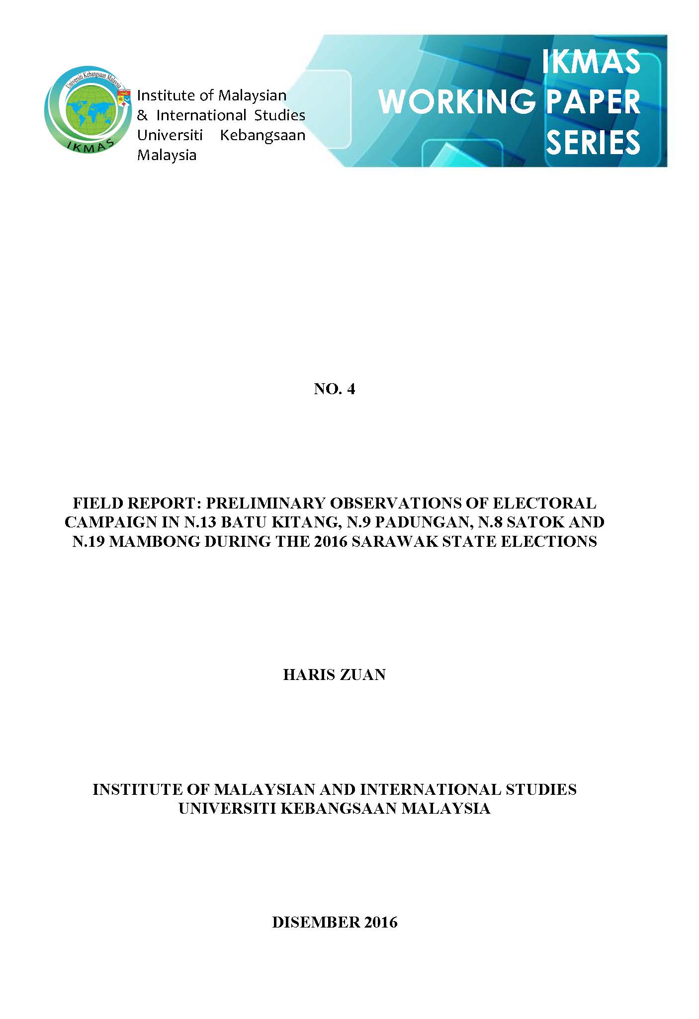 Field Report: Preliminary Observations of Electoral Campaign in N.13 Batu Kitang, N.9 Padungan, N.8 Satok and N.19 Mambong during the 2016 Sarawak State Elections