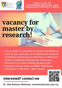 One GRA position @ IMEN-UKM for Master Candidate to Work on the Synthesis of 2D Material