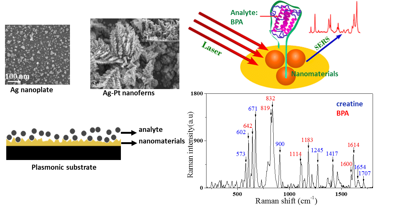 Figure: SERS sensor using plasmonic properties of triangular silver nanoplate and silver-platinum nanoferns substrate to detect bisphenol A (BPA) and creatinine.