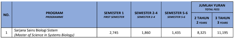 Bachelors degree in Biological Sciences, Physical Sciences, Chemical Sciences, Computational Sciences, Mathematical Sciences or Engineering from Universiti Kebangsaan Malaysia or other institutions of higher learning that are recognised by the Senate of UKM; Or