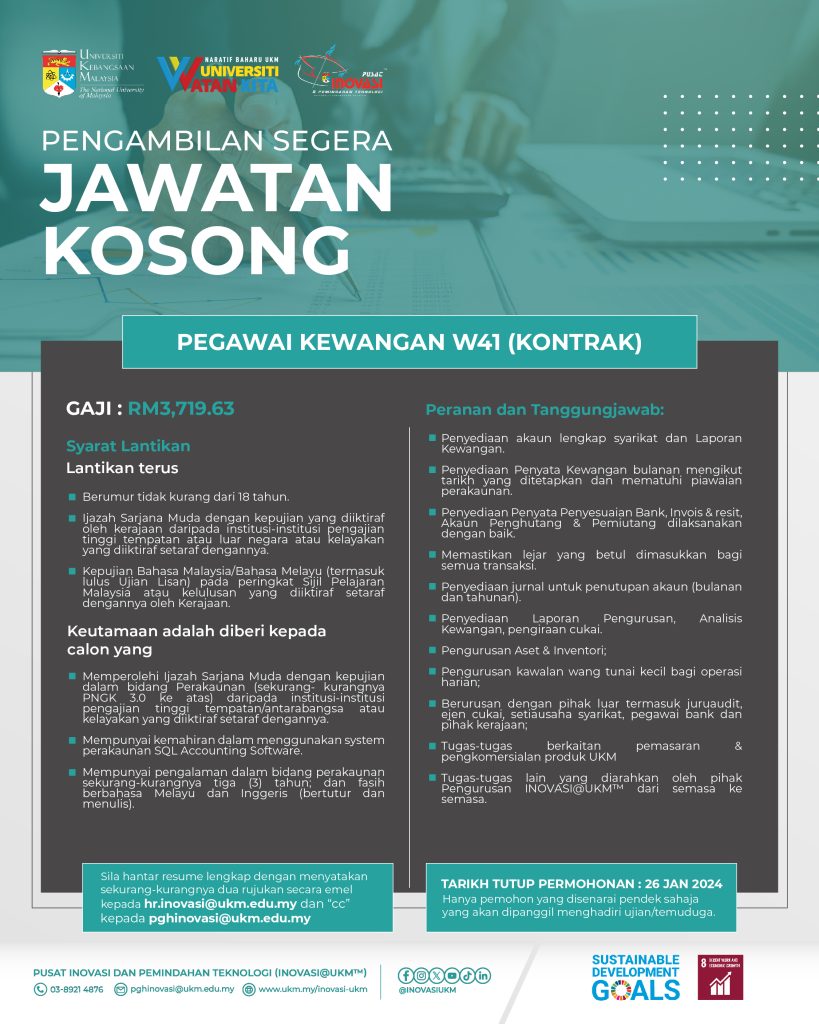 JAWATAN KOSONG PEGAWAI KEWANGAN (W41) (KONTRAK)