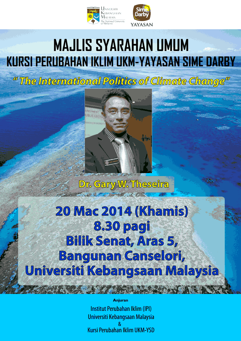 Galeri 1st Academic Research on Palm Oil Sustainability (ARPOS) Network Symposium 10/07/2014 Majlis Syarahan Umum “The International Politics of Climate Change” 20 Mac 2014 20/03/2014 Lectures on Sustainable Development Safeguarding the Future 8-10 Mac 2012 08/03/2012 Majlis Pelancaran Kursi Perubahan Iklim UKM-YSD 15 Mac 2010 Public lecture on Climate Change- What is it all about and what are the implications for Malaysia at UKM on 14 Oct 2011 14/10/2011 Research Workshop for UKM-YSD Climate Change Chair 05/07/2013 Catatan Baru
