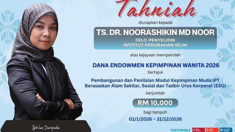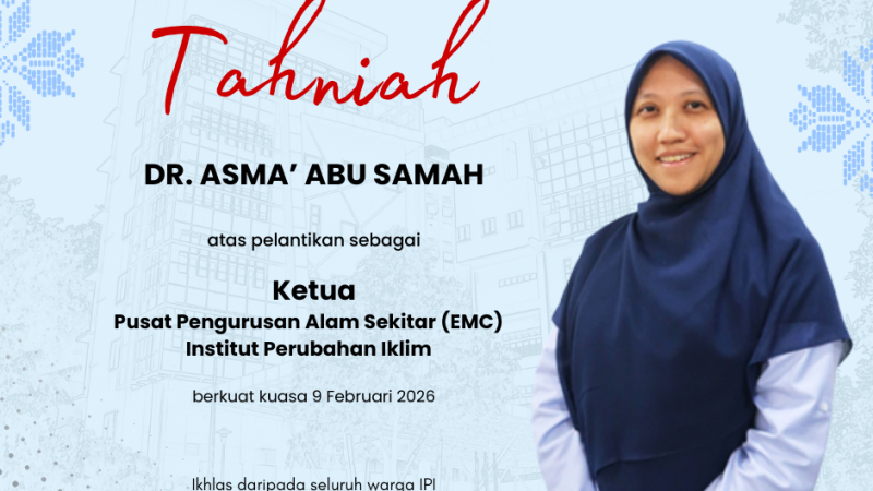 The Institute of Climate Change (IPI), Universiti Kebangsaan Malaysia, established in December 2013, has been actively involved in advancing climate change research and environmental improvement at both local and global levels. As a renowned educational and research centre, IPI focuses on climate change, space science, and environmental studies. IPI also serves as a key advisor to the Government of Malaysia, providing technical expertise on climate and environmental issues.