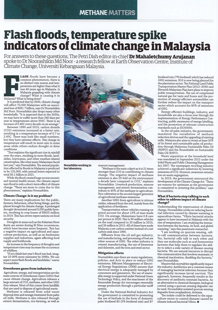 Flash floods, temperature spike indicators of climate change in Malaysia Artikel dalam surat khabar sains “The Petri Dish”