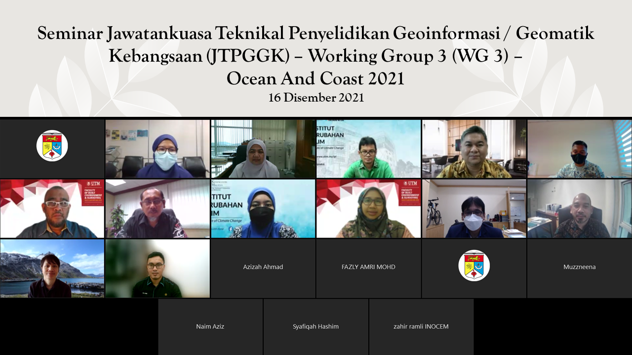Seminar Jawatankuasa Teknikal Penyelidikan Geoinformasi / Geomatik Kebangsaan (JTPGGK) – Working Group 3 (WG 3) – Ocean And Coast 2021