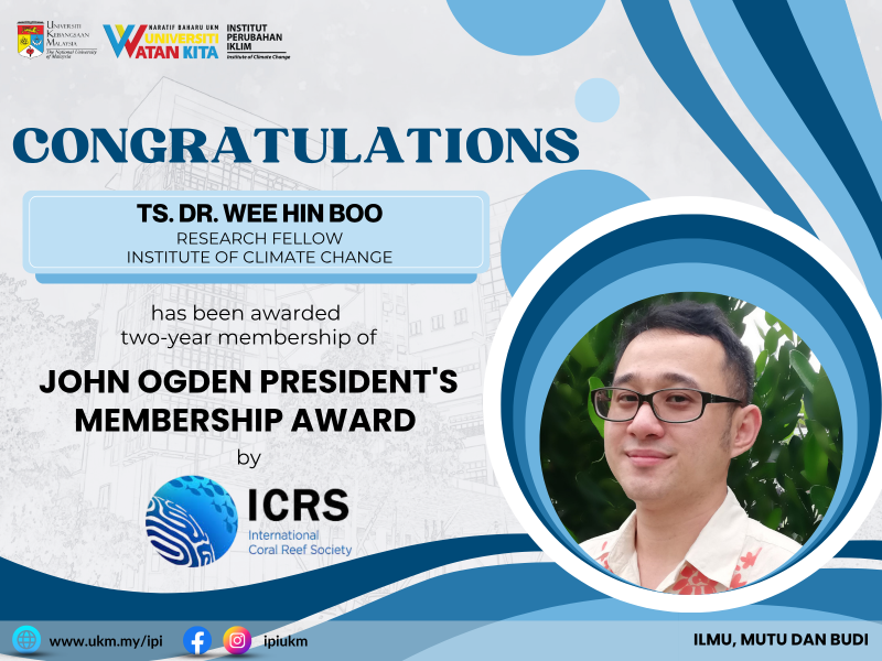 Tahniah! John Ogden President’s Membership Award Tahniah diucapkan kepada Ts. Dr. Wee Hin Boo diatas kejayaan memperoleh John Ogden President’s Membership Award oleh International Corel Reef Society bagi tempoh 2025-2027. #icrs #award #tahniah #ipiukm