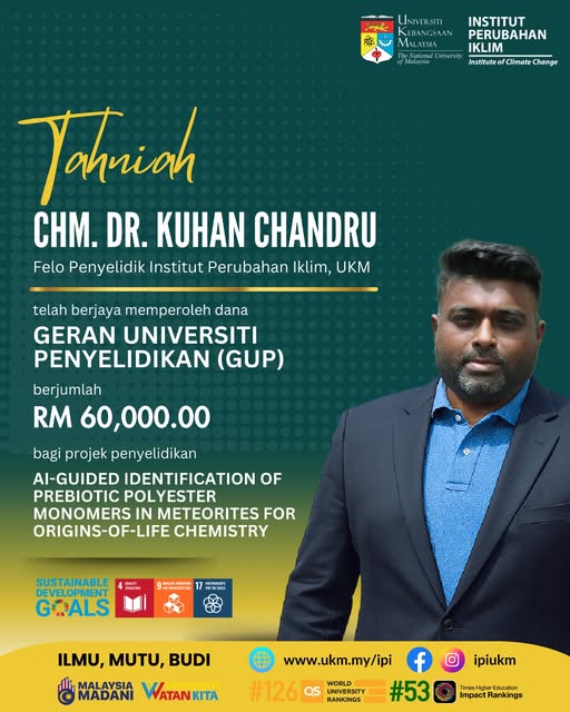 Tahniah Penerima Geran Universiti Penyelidikan (GUP) Tahniah kepada ChM Dr Kuhan Chandru, Felo Penyelidik IPI, atas kejayaan menerima Geran Universiti Penyelidikan (GUP) berjumlah RM 60,000. #tahniahIPI
