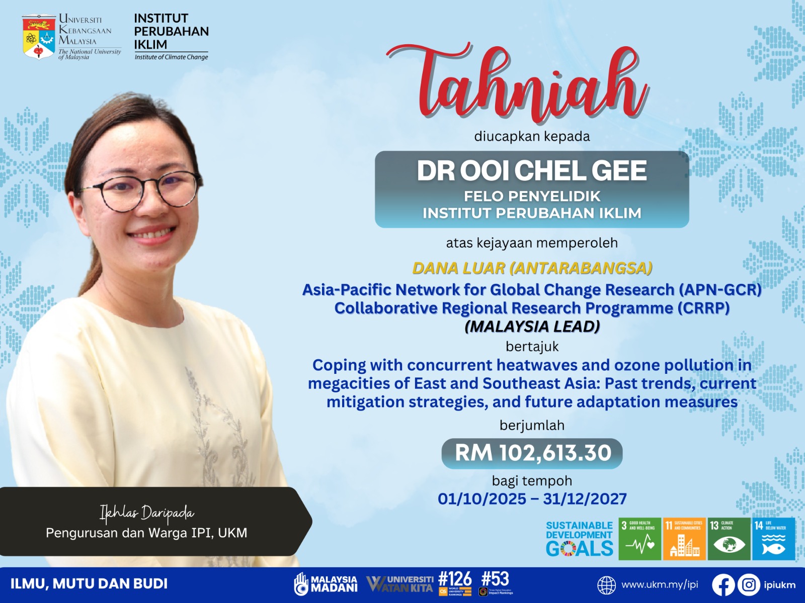 Ucapan Tahniah: Geran Penyelidikan Antarabangsa Asia-Pacific Network for Global Change Research (APN)