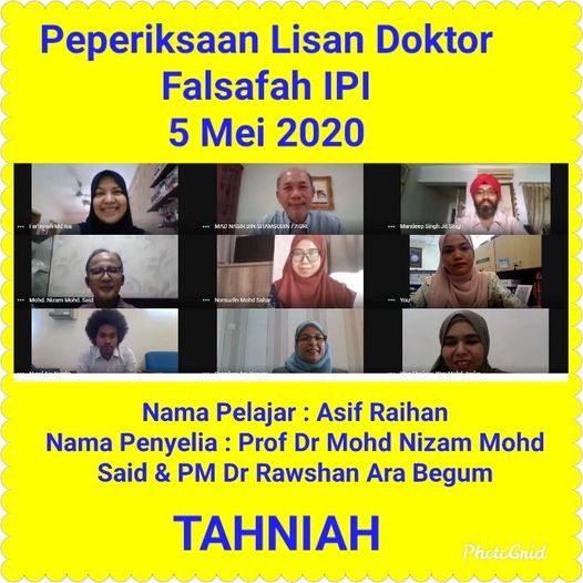 Peperiksaan Lisan (VIVA) Doktor Falsafah IPI : Asif Raihan