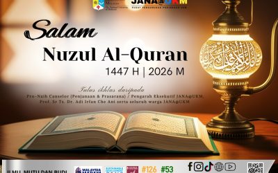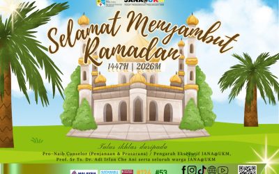 Dengan penuh rasa syukur dan tulus ikhlas daripada Pro-Naib Canselor (Penjanaan & Prasarana) / Pengarah Eksekutif JANA@UKM, Prof. Sr Ts. Dr. Adi Irfan Che Ani serta seluruh warga JANA@UKM ingin mengucapkan Selamat Menyambut Bulan Ramadhan Al-Mubarak 1447H | 2026M kepada semua umat Islam khususnya warga UKM.