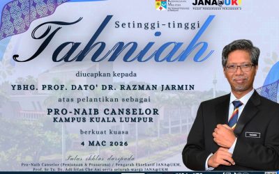 Tahniah YBhg. Prof. Dato’ Dr. Razman Jarmin atas pelantikan sebagai Pro-Naib Canselor Kampus Kuala Lumpur berkuat kuasa 4 Mac 2026.