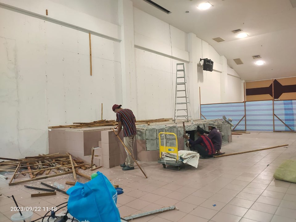 Lawat periksa kerja-kerja menaik taraf Dewan Tun Abdullah Mohd. Salleh (DTAMS) oleh YBrs. Dr. Mustazar Mansur, Timbalan Pengarah Eksekutif (Pengurusan Fasiliti dan Digital), Pusat Pengurusan Penjanaan UKM (JANA@UKM).