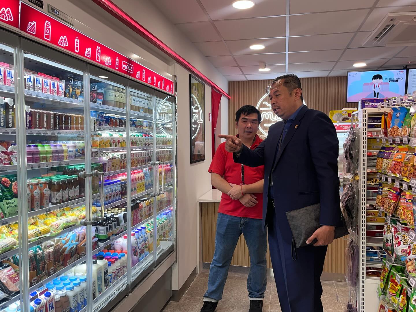 Lawatan Tapak Pembukaan Pengoperasian kedai serbaneka MyNews Retail di Kolej Ungku Omar oleh YBrs. Prof. Madya Dr. Mustazar Mansur, Timbalan Pengarah Eksekutif (Pengurusan Fasiliti & Digital) JANA@UKM, turut hadir wakil syarikat dan wakil JANA@UKM.