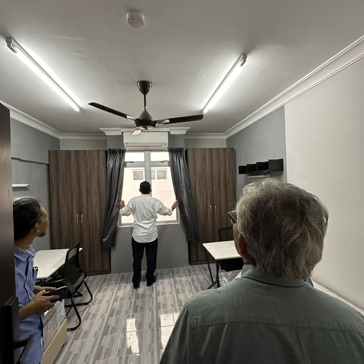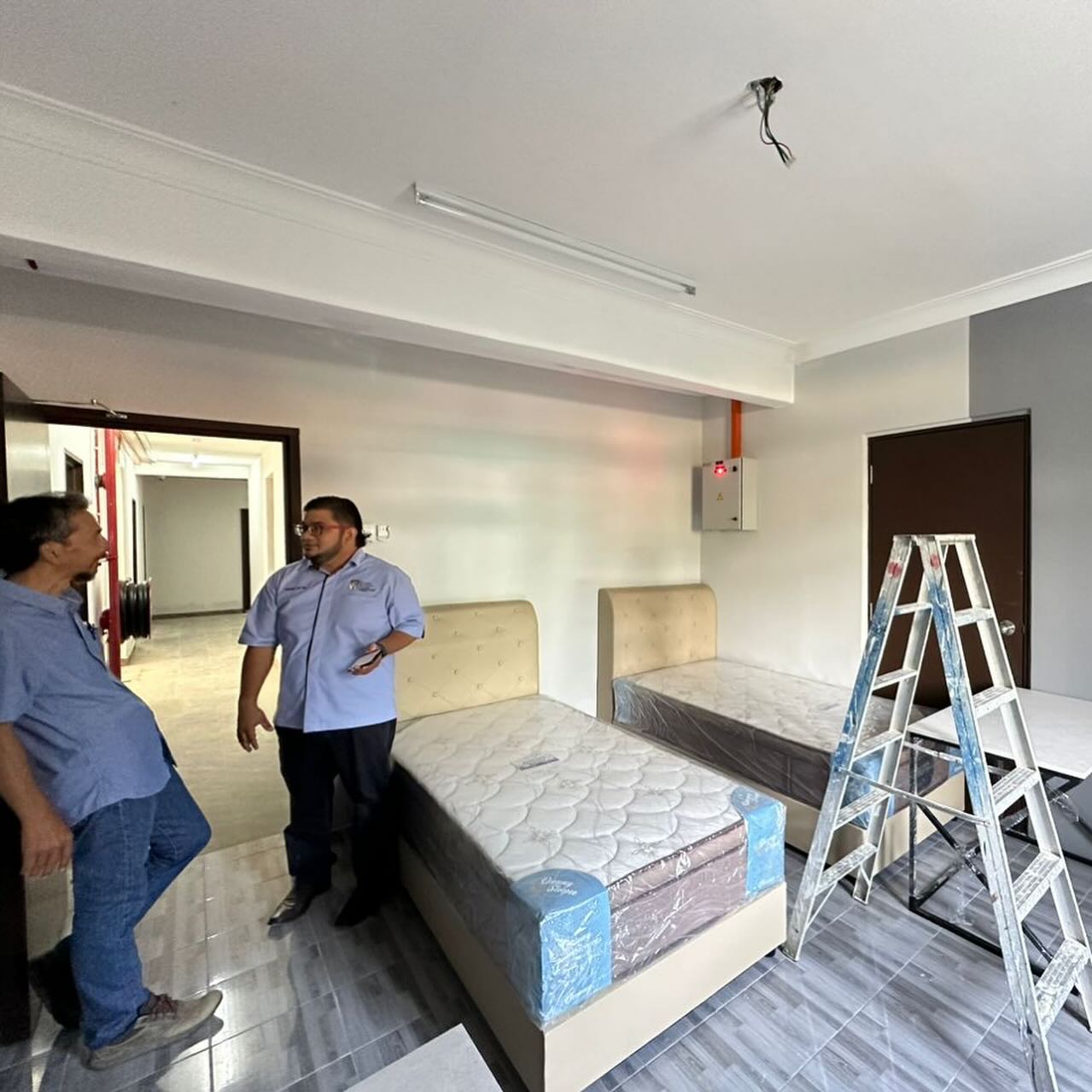 Sesi Lawat Periksa dan Pemeriksaan ke atas Bangunan Blok 2 Kolej Keris Mas pada 27 Mac 2024 oleh wakil pihak Pengurusan Penjanaan UKM (JANA@UKM) Prof. Madya Ar. Dr. Mohd Farid Mohamed, Timbalan Pengarah Eksekutif (Strategi Pembangunan Hartanah) , pegawai Hartanah Sr. Mohd Za’im Aziz, Sr. Ts. Mohammad Firdaus Ishak dan En. Amirul Shafiq Ahmad Nubli. Turut serta bersama juga wakil pihak syarikat Encik Norman dan Encik Muktar Jamil.