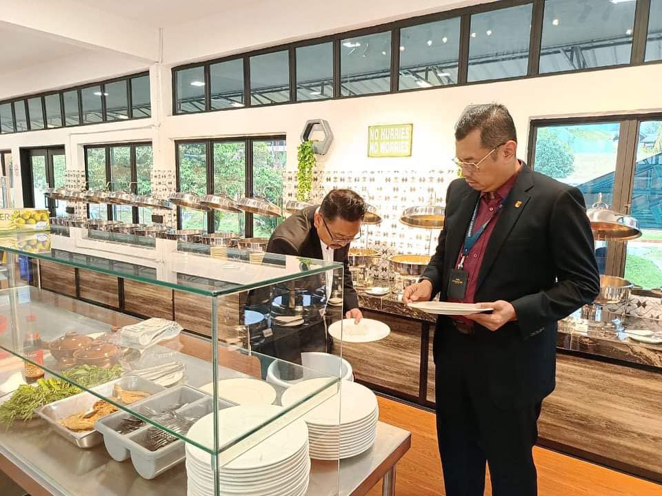 Sesi perbincangan Pembukaan & Majlis Perasmian Kafeteria Santai D’ Tepian di Fakulti Kejuruteraan dan Alam Bina (FKAB) UKM oleh Timbalan Pengarah Eksekutif (Pengurusan Fasiliti dan Digital) Pusat Pengurusan Penjanaan UKM (JANA@UKM), YBrs. Dr. Mustazar Mansur; Penyelaras FKAB UKM, Sr. Ts. Dr. Noraini Hamizah; Pengarah Pusat Hal Ehwal Pelajar (HEP-UKM), Prof. Ts. Dr. Norinsan Kamil Othman dan syarikat berjaya dilantik bagi menjalankan dan menguruskan perkhidmatan kafeteria Santai D’ Tepian FKAB UKM.
