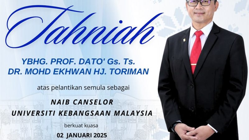 Atas pelantikan semula sebagai Naib Canselor Universiti Kebangsaan Malaysia, yang berkuat kuasa mulai 2 Januari 2025.