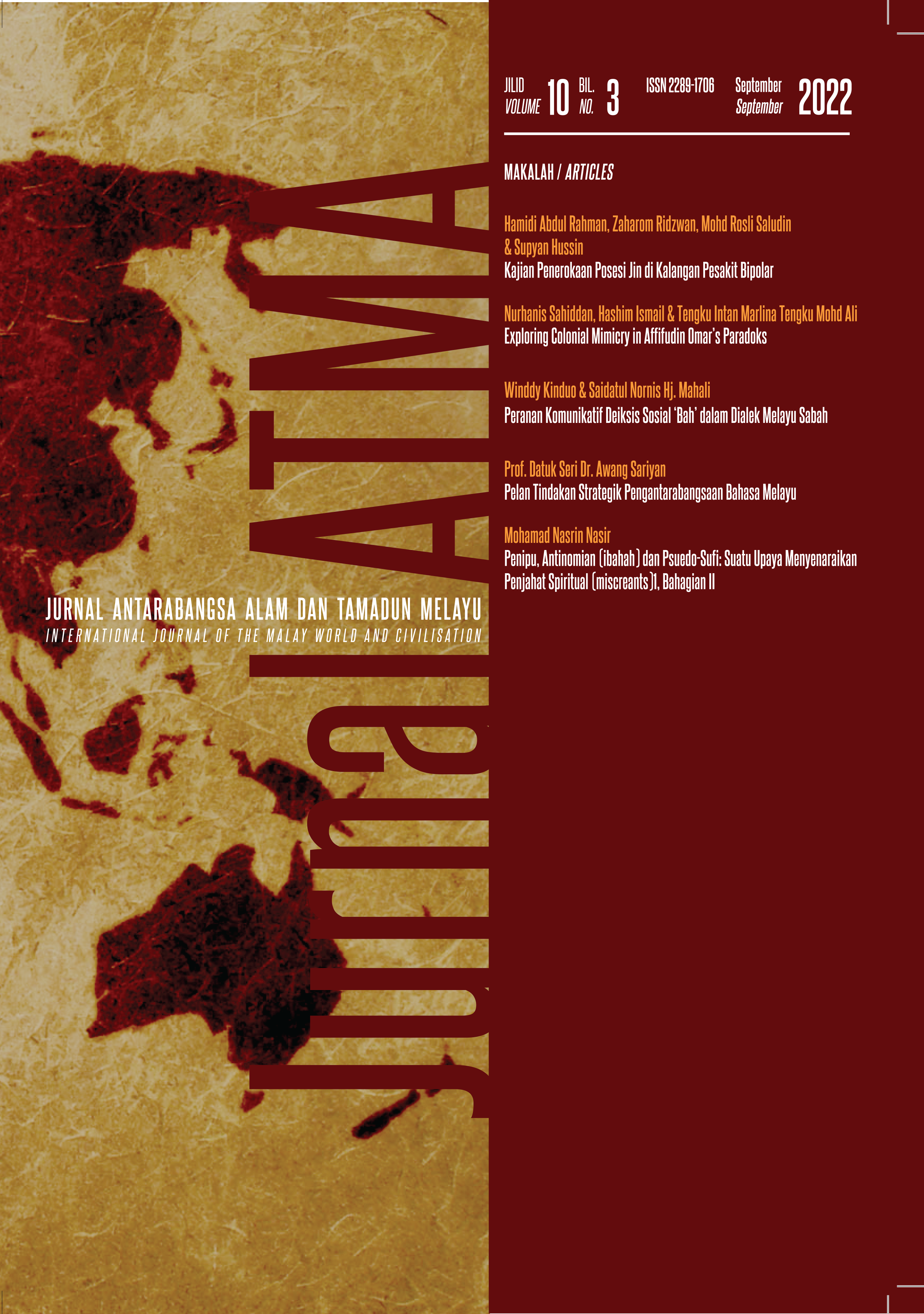 | 2) | Kajian Penerokaan Posesi Jin di Kalangan Pesakit Bipolar Hamidi Abdul Rahman, Zaharom Ridzwan, Mohd Rosli Saludin & Supyan Hussin |