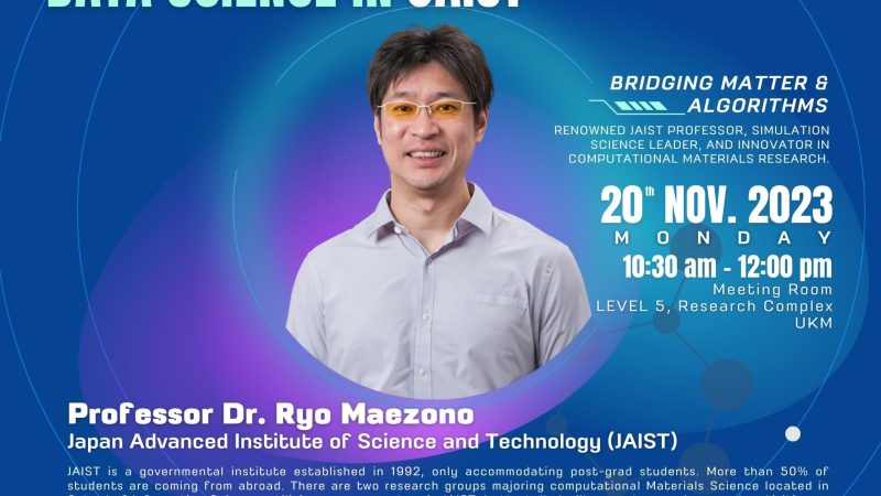 “MATERIALS SCIENCE ASSISTED BY DATA SCIENCE IN JAIST” OLEH PROF. DR. RYO MAEZONO, JAIST