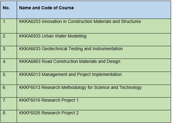 - Bachelor’s Degree in Engineering with Honours or Bachelor’s Degree in Engineering Technology (CGPA 2.5 or above, or its equivalent) from Universiti Kebangsaan Malaysia or an equivalent qualification from any recognized university; OR;