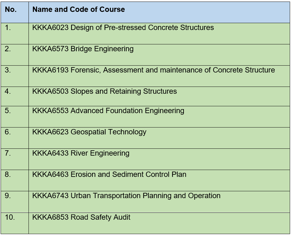 - Holding a Diploma in Civil Engineering or a related field, and this qualification is recognized and accredited by the Government of Malaysia and approved by the Senate;