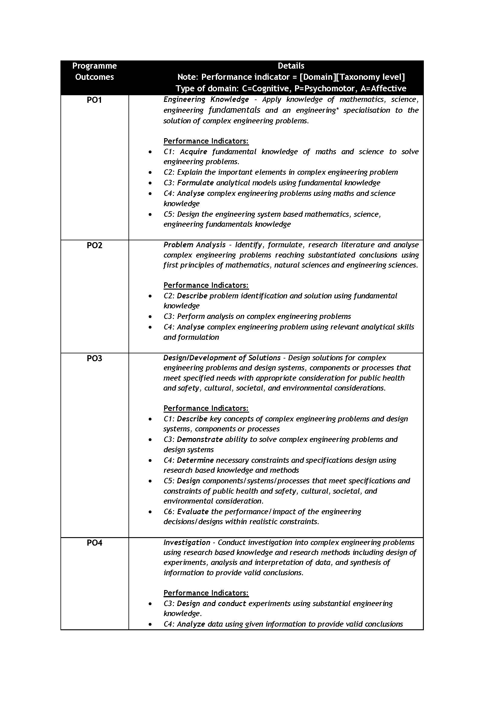 Programme Outcomes & Performance Indicators (PO-PI)