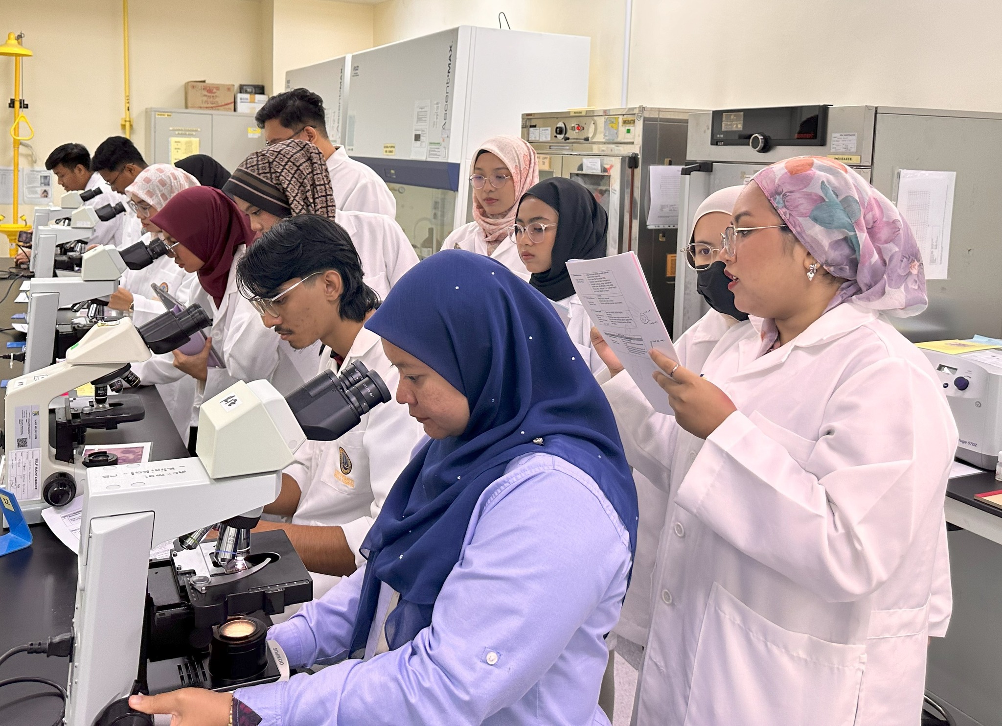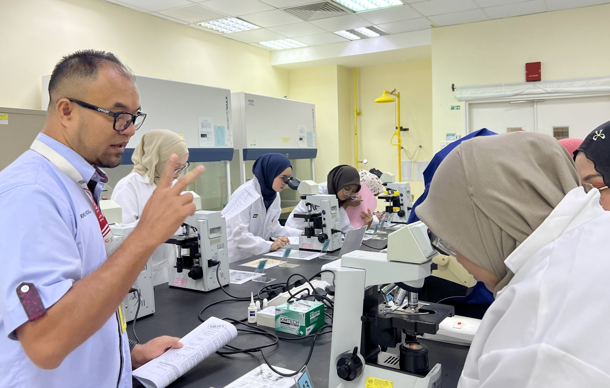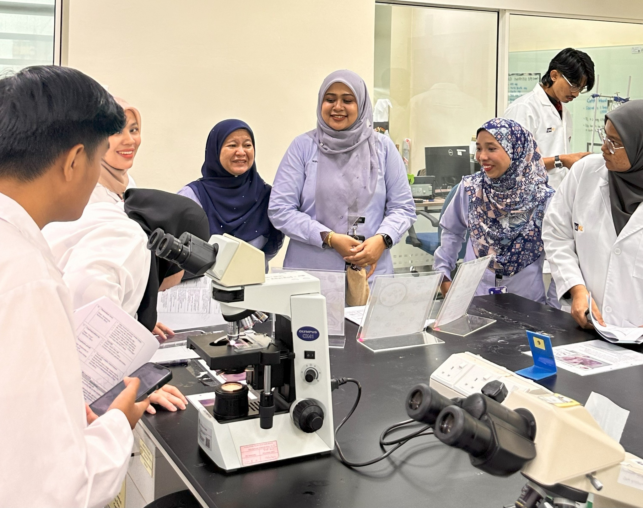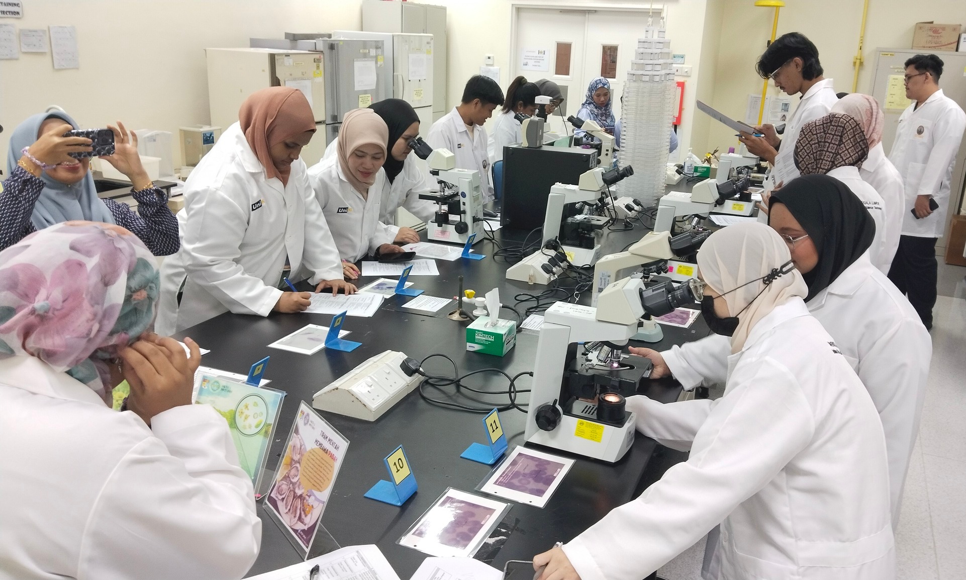 Jabatan Parasitologi & Entomologi Perubatan menerima kunjungan 73 pelajar Program Sarjana Muda Sains Bioperubatan dan Diploma Teknologi Makmal Perubatan daripada Universiti Kuala Lumpur (UniKL) pada 27 November 2024 bagi menjayakan EduVisit Parasitologi & Entomologi Perubatan. Program berlangsung selama hampir 4 jam yang merangkumi lawatan berpandu interaktif ke makmal, pameran spesimen parasit protozoa dan cacing (helmin) secara mikroskopik serta pameran model serangga berkepentingan perubatan. Diharap program ini dapat memberikan pengetahuan dan pengalaman berharga sebagai nilai tambah kepada pembelajaran parasitologi dan entomologi para pelajar di UniKL.