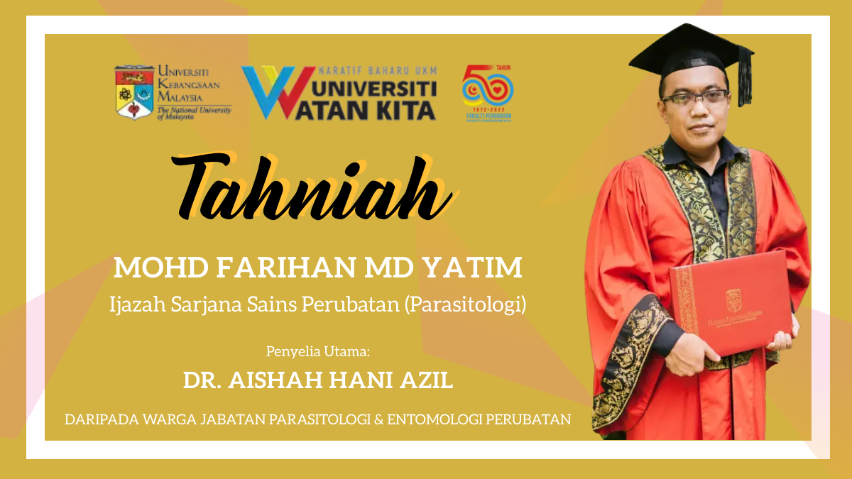 Sekalung tahniah diucapkan kepada Encik Mohd Farihan Md Yatim, graduan Ijazah Sarjana Sains Perubatan (Parasitologi) yang telah bergraduasi di Majlis Konvokesyen UKM Ke-49 (Sidang …