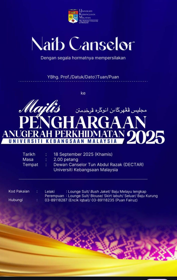 Penghargaan & Tahniah Sempena Majlis Penghargaan Anugerah Perkhidmatan UKM 2025