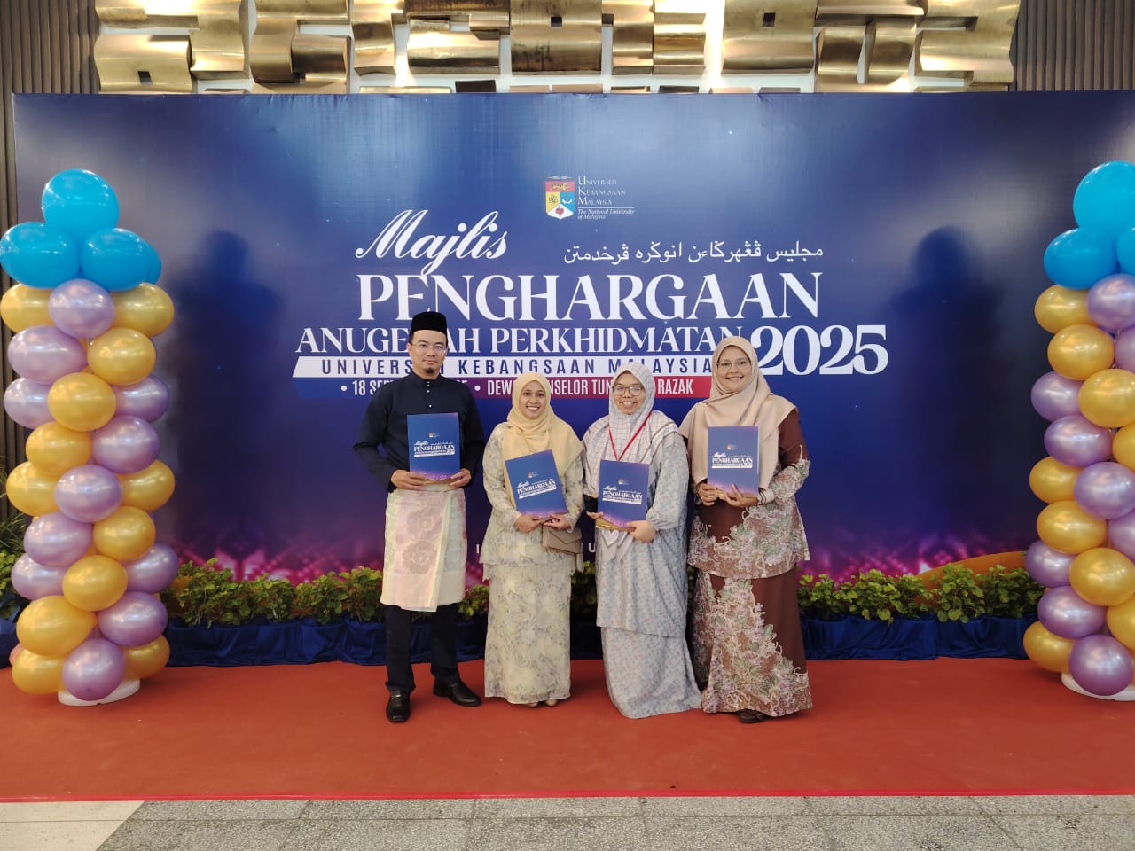 Majlis Penghargaan Anugerah Perkhidmatan UKM 2025 yang berlangsung di DECTAR UKM hari ini menyaksikan detik penuh bermakna buat warga jabatan kita. Setinggi-tinggi tahniah dan penghargaan diucapkan kepada para penerima anugerah atas dedikasi, komitmen serta sumbangan cemerlang mereka sepanjang berkhidmat.