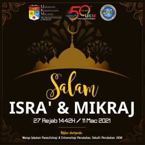 Seluruh warga Jabatan Parasitologi & Entomologi Perubatan mengucapkan Salam Isra’ & Mikraj 1442H bersamaan 11 Mac 2021 kepada seluruh muslimin dan muslimat.
