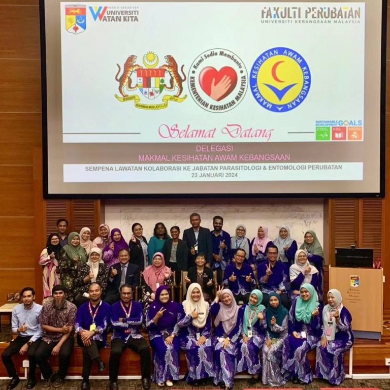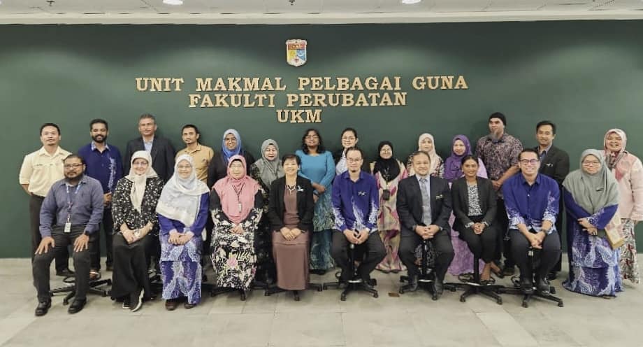 Jabatan merakamkan ucapan ribuan terima kasih kepada delegasi Makmal Kesihatan Awam Kebangsaan (MKAK) yang sudi membuat lawatan kolaborasi sambil meninjau fasiliti di Fakulti Perubatan UKM untuk tujuan kerjasama strategik pada masa akan datang. Delegasi MKAK diketuai oleh YBhg. Dr. Nik Jasmin Nik Mahir selaku Pengarah dengan diiringi oleh 13 pegawai daripada pelbagai seksyen dan bidang.