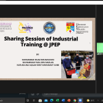 Pelajar Latihan Industri menyampaikan perkongsian mereka berkenaan pengalaman mereka sepanjang menjalankan latihan industri di jabatan.