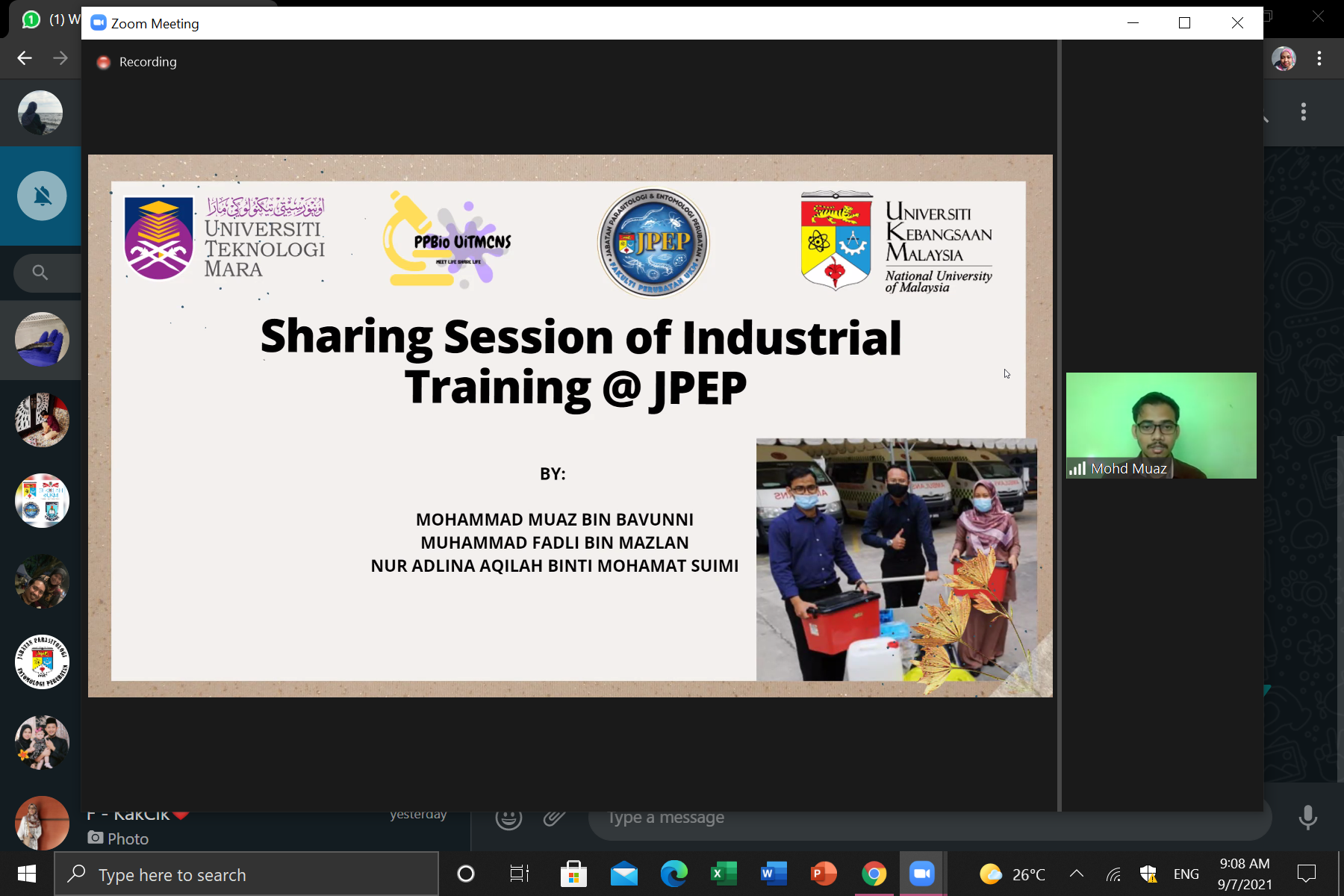 Mereka merupakan pelajar dari UiTM Kuala Pilah yang telah menjalankan Latih Industri di jabatan bermula pada 29 Mac sehingga 9 Julai 2021. Disebabkan kekangan pandemik Covid-19 dan PKP serta PKPD dibeberapa kawasan, sesi akhir latihan industri ini hanya dapat dijalankan melalui aplikasi ZOOM.