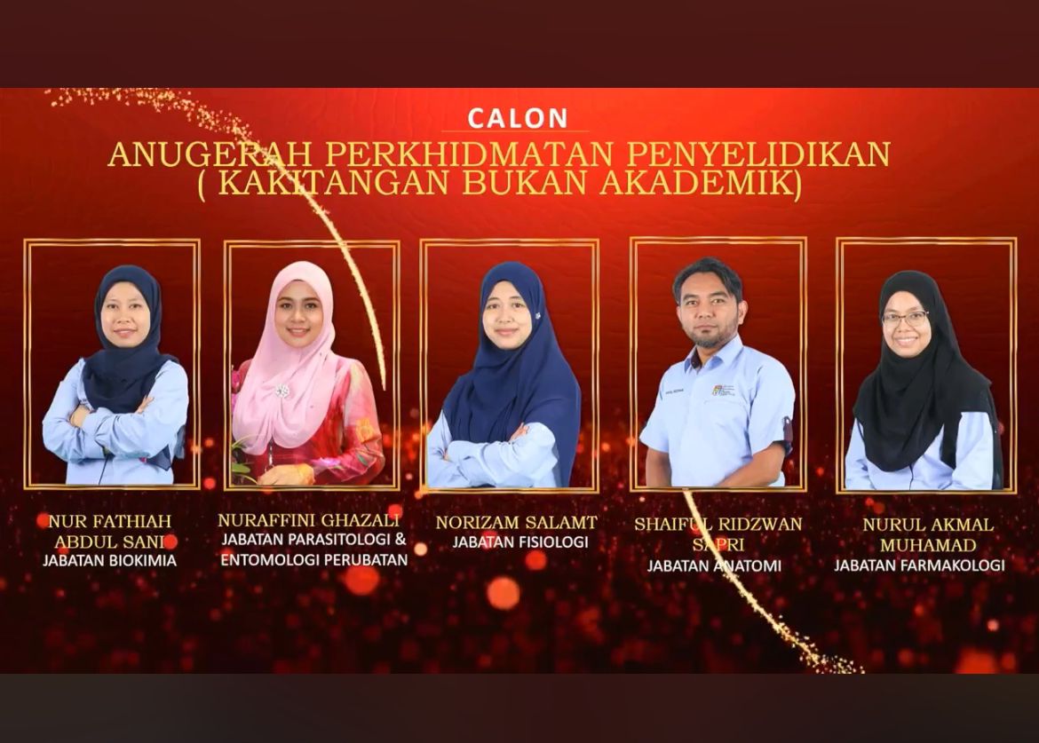Dan sekalung penghargaan kepada Pn. Nuraffini Ghazali yang tercalon dalam Anugerah Perkhidmatan Penyelidikan (Bukan Akademik)