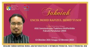 Sekalung tahniah diucapkan kepada En. Mohd Rafizul Mohd Yusof di atas pelantikan sebagai Ahli Jawatankuasa Taskforce MyPortfolio bagi Fakulti Perubatan.