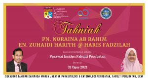 Jabatan Parasitologi & Entomologi Perubatan merakamkan ucapan tahniah buat Puan Noraina Ab Rahim (JTMP U32) dan Encik Mohd Zuhaidi Harith @ Haris Fadzilah (Pembantu Operasi N11) di atas pelantikan sebagai Pegawai Insiden Fakulti Perubatan berkuatkuasa 31 Ogos 2021.