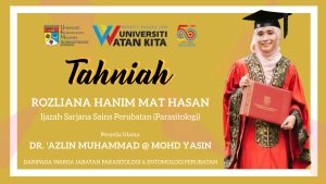 Sekalung tahniah diucapkan kepada Puan Rozliana Hanim Mat Hasan, graduan Ijazah Sarjana Sains Perubatan (Parasitologi) yang telah bergraduasi di Majlis Konvokesyen UKM Ke-49 (Sidang Pertama) pada Ahad, 28 November 2021.