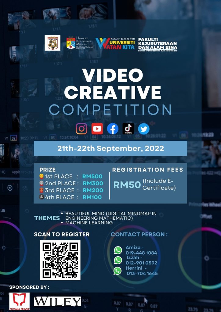 Penghasilan video-video kreatif berilmiah berkaitan Matematik dan Statistik dalam Kejuruteraan dan masalah dunia sebenar.