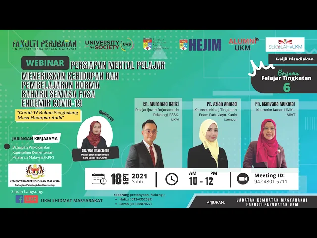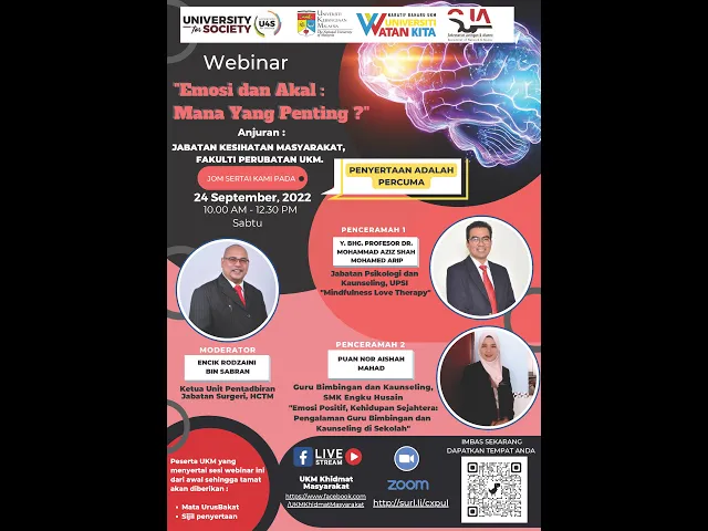 Video Symposium on Human T-Lymphotrophic Virus Majalah iNSPIRASI UKM Webinar Emosi dan Akal : Mana Yang Penting? Webinar : Apasal Doktor Banyak Songeh? Apa Masyarakat Perlu Tahu Tentang Cara Doktor Berfikir Acara TEMANITA 2022 Webinar : The Importance of Publications in Research and the Development of Research Careers Webinar: An Update on Mental Health and Toxic Metal Exposures in the Environment Webinar Pemerkasaan Kesihatan dan Sosial Untuk Wanita Anggun Majlis Menandatangani Dokumen Kerjasama (MoU) Antara UKM Dengan DBKL Webinar Persiapan Mental Pelajar Meneruskan Kehidupan & Pembelajaran Norma Baharu Semasa Fasa Endemik Covid-19 Older Entries