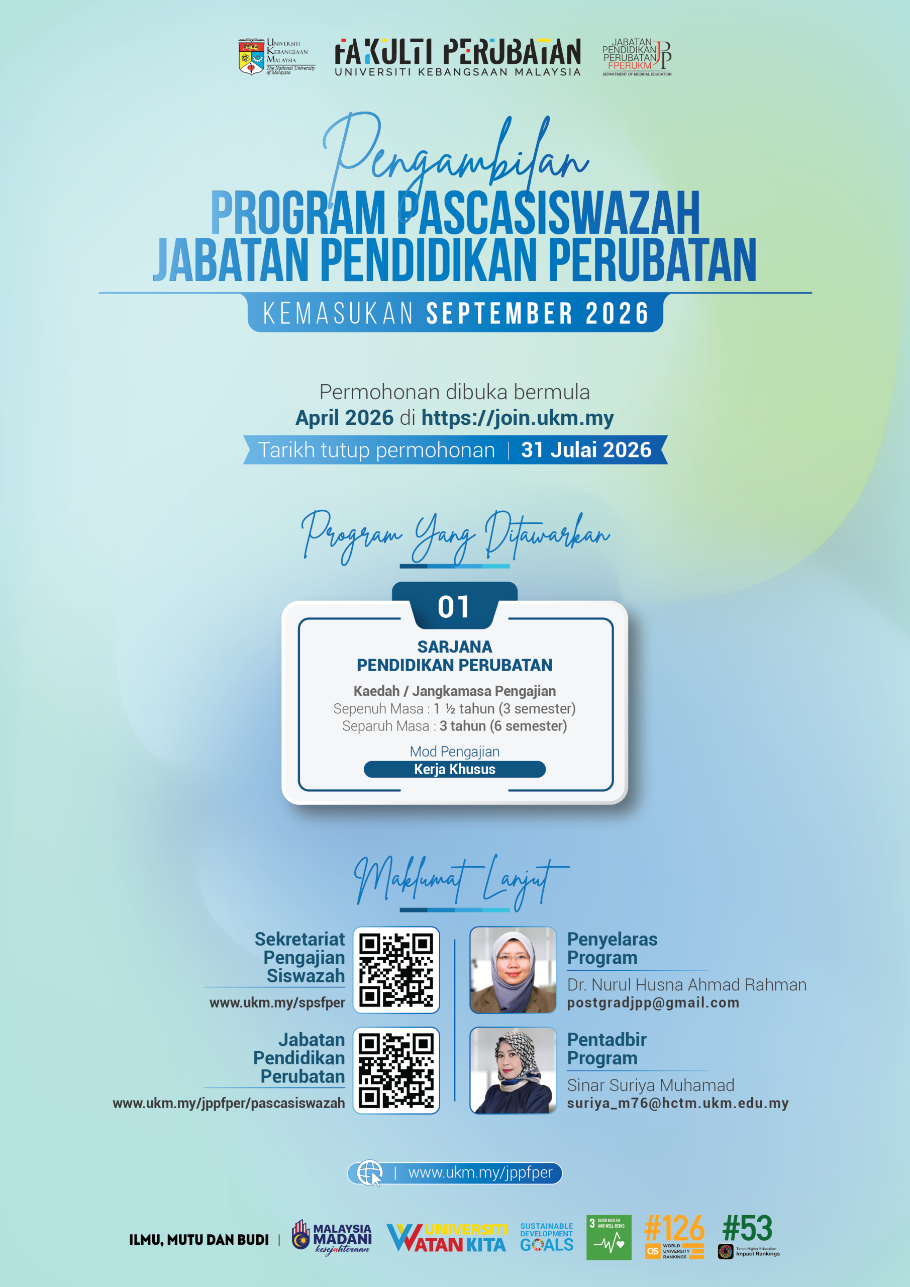 Melalui kursus-kursus yang dipelajari dan projek penyelidikan yang dijalankan dalam program-program pascasiswazah ini membantu para pelajar meningkatkan pengetahuan, kemahiran dan tingkah laku dalam bidang pendidikan profesional perubatan dan kesihatan yang menjadi pilihan kerjaya mereka setelah tamat pengajian.