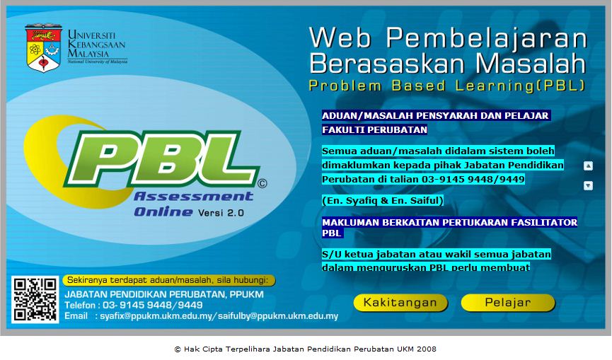 Sistem ini telah menggantikan kaedah penilaian secara manual berasaskan kertas iaitu borang penilaian Student Evaluation Form, Self Evaluation Form dan Facilitator Evaluation Form. Untuk makluman, sistem ini akan digunakan oleh beberapa orang pengguna iaitu pentadbir sistem (JPP), ketua jabatan, ketua modul, fasilitator dan pelajar perubatan (Tahun 1 dan 2). Setiap pengguna mempunyai tanggungjawab masing-masing untuk membolehkan sistem ini berjalan lancar dan sistematik.