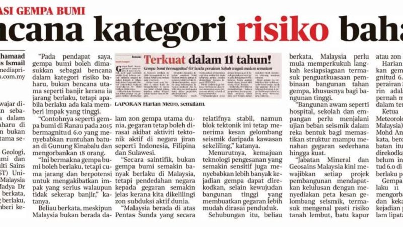 Keratan Akhbar: Bencana kategori risiko baharu (Harian Metro)