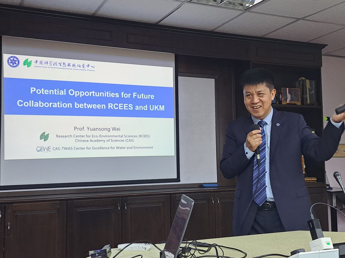 15 July 2025 — This morning, Prof. Yuansong Wei, a representative from the Chinese Academy of Sciences (CAS), visited the Department of Earth Sciences and Environment (JSBAS), Faculty of Science and Technology (FST), Universiti Kebangsaan Malaysia (UKM), to discuss potential collaborative initiatives.